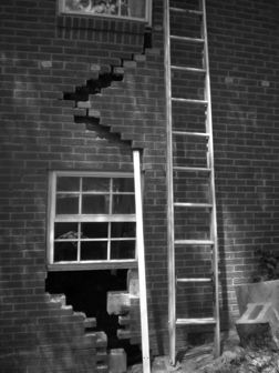 Vertical subsidence due to water infiltration preparing for the steel piering system.